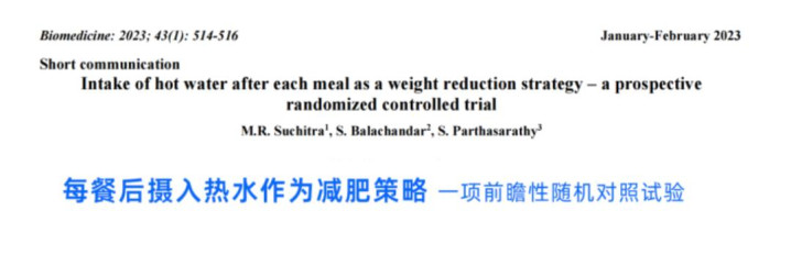 ①Intake of hot water after each meal as a weight reduction strategy – a prospective randomized controlled trial.Biomedicine 2023.43(01):514-516