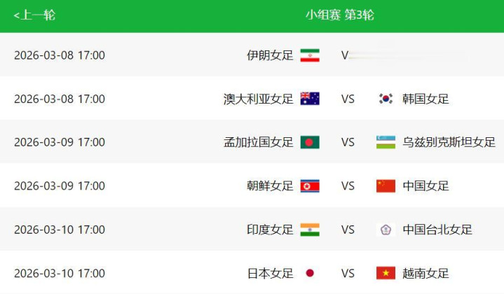 本届女足亚洲杯小组赛第二轮,中国女足3比0取胜。